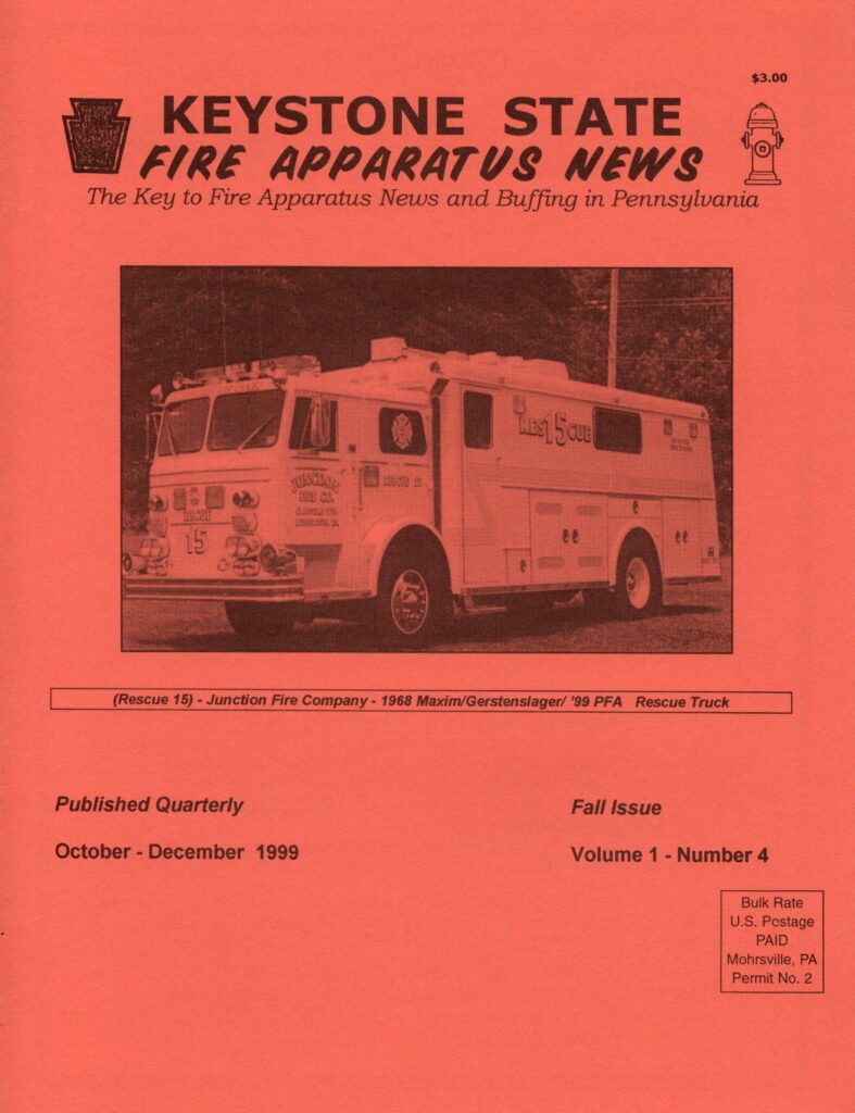 We started this endeavor back in 1999.  It always was a dream of mine to share Pennsylvania fire apparatus information with other historians and buffs.  Obviously back then not every fire company had a website or facebook page.  So information gathering was more by word of mouth, parades or other fire events.   There have always been a few key people across the Keystone State that have been vital to gathering information and obtaining pictures.  Most of these people have contributed to this magazine over the years.  And for that I want to thank each and every one of them for all of their help.